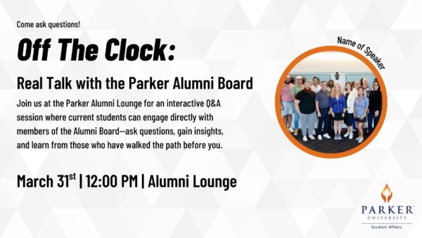 Students will have the opportunity to talk to the Parker Alumni Board at the Alumni Lounge, this will be a Q&A styled event!